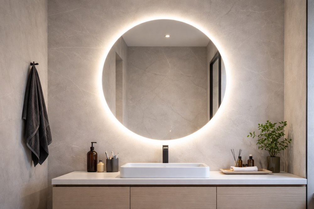 Prava luč za kopalnico z ogledalom je ključna za natančno uporabo ogledala in udobje v kopalnici. Najboljša izbira je nevtralna bela LED svetloba z visokim CRI, ki zagotavlja realen prikaz barv in enakomerno osvetlitev brez senc. Pomembna je tudi ustrezna IP zaščita zaradi vlage in varnosti. Takšna luč združuje funkcionalnost, energijsko učinkovitost in sodoben videz.