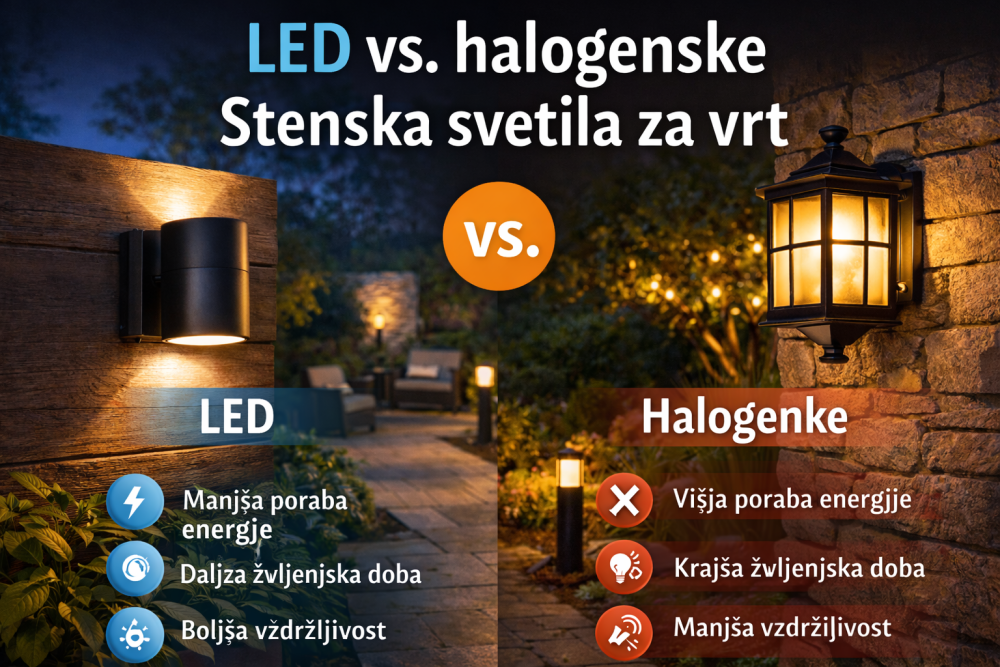 Da — LED zunanje stenske luči so v večini primerov najboljša izbira za vrtno razsvetljavo, saj ponujajo učinkovitost, dolgo življenjsko dobo in nizke stroške obratovanja. LED (Light Emitting Diode) tehnologija porabi bistveno manj energije kot klasične žarnice, hkrati pa zagotavlja dovolj svetlobe tudi pri nizkih močeh.